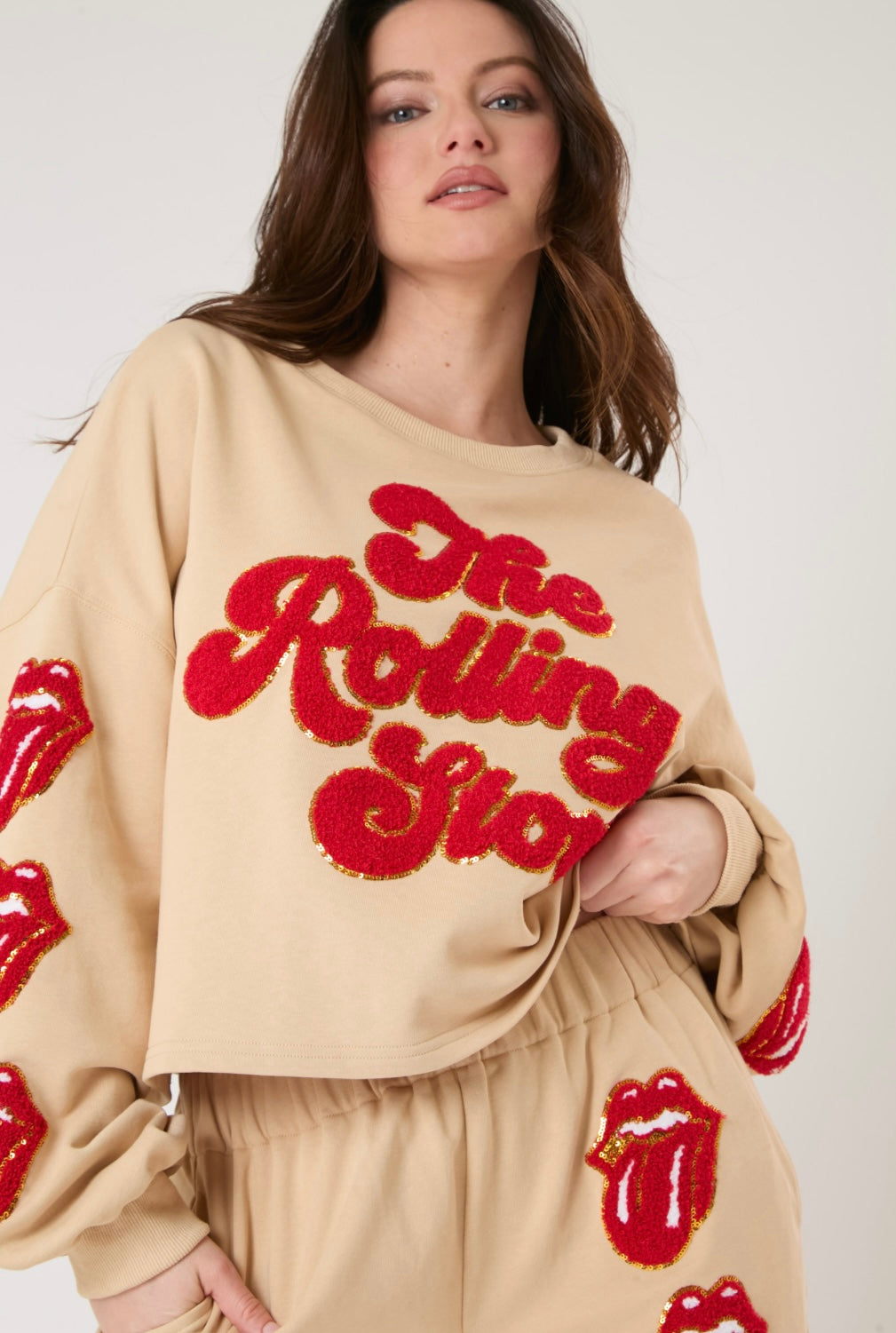 Go to the shopAdd some rockstar style to your wardrobe with our Licensed Rolling Stones Sweatshirt. The chenille letters and sequins add a touch of glamour to this cropped sweatshirt. Complete the look with matching joggers for a coordinated outfit.