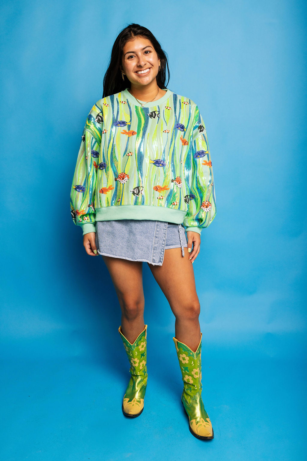 Go to the shopQueen of Sparkles Sequin underwater and fish sweatshirt. Copious amount of sequins