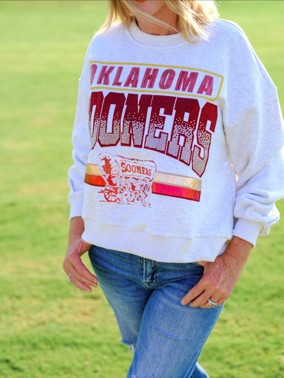 Go to the shopHere's a staple for you Sooners to have and to hold forever, Be a unique Sooner fan with our Queen of Sparkles Licensed vintage rhinestone collegiate sweatshirt specially made for the University of Oklahoma.