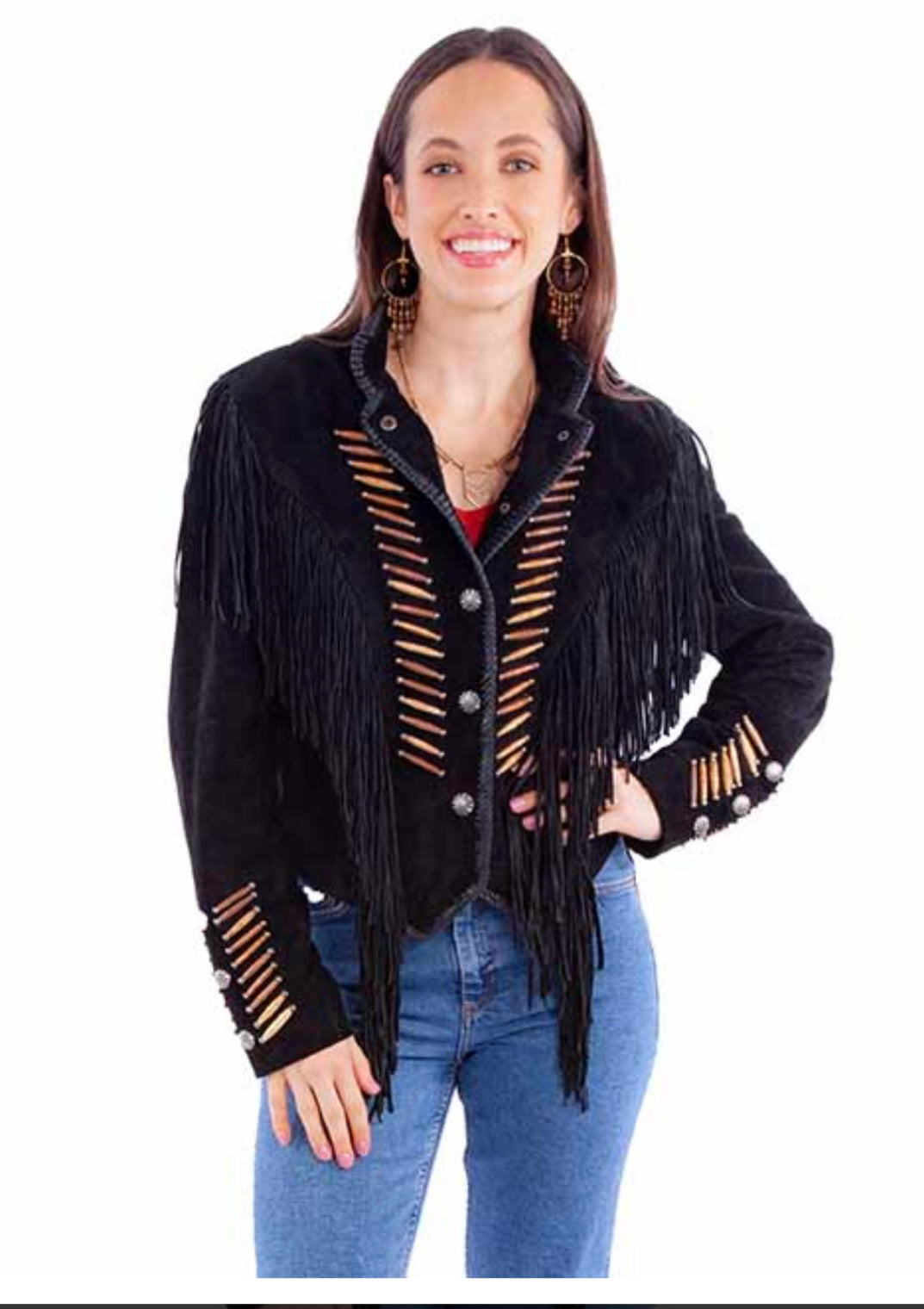 Go to the shopBring a touch of wild charm to your wardrobe with the Scully Suede Fringe Jacket. Crafted from soft suede leather, it features playful fringe accents, bone bead detail and silver concho buttons