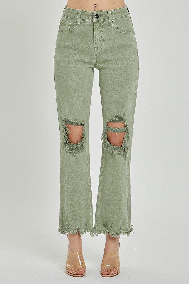 Go to the shopHigh rise jean distressed straight pants RDP-5265-N Olive