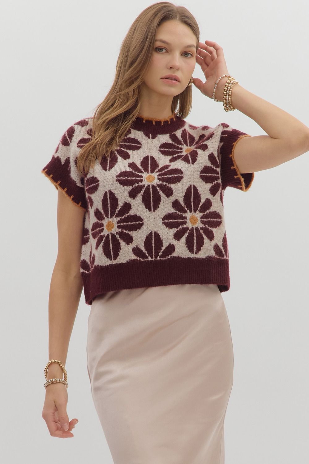 Go to the shopStay stylish with our Floral Crop Top Knit in a rich wine color. This soft, breathable sweater features a floral pattern and a cropped fit that pairs perfectly with everything in your closet.