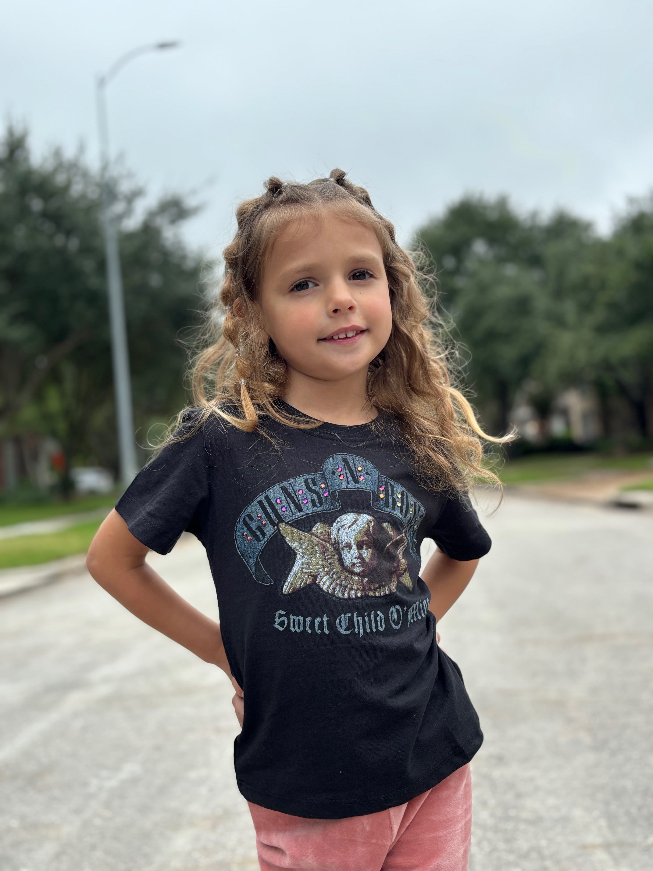 The Grove Collection of kids oversized Guns N' Roses Rhinestone Tee