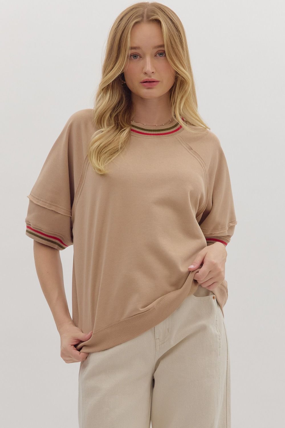 Go to the shopThis boxy, oversized tee in sand blends sporty comfort with effortless style. Perfect for dressing up or down, its relaxed fit keeps you comfortable all day, while wearing breathable fabric ensures ease and freshness.