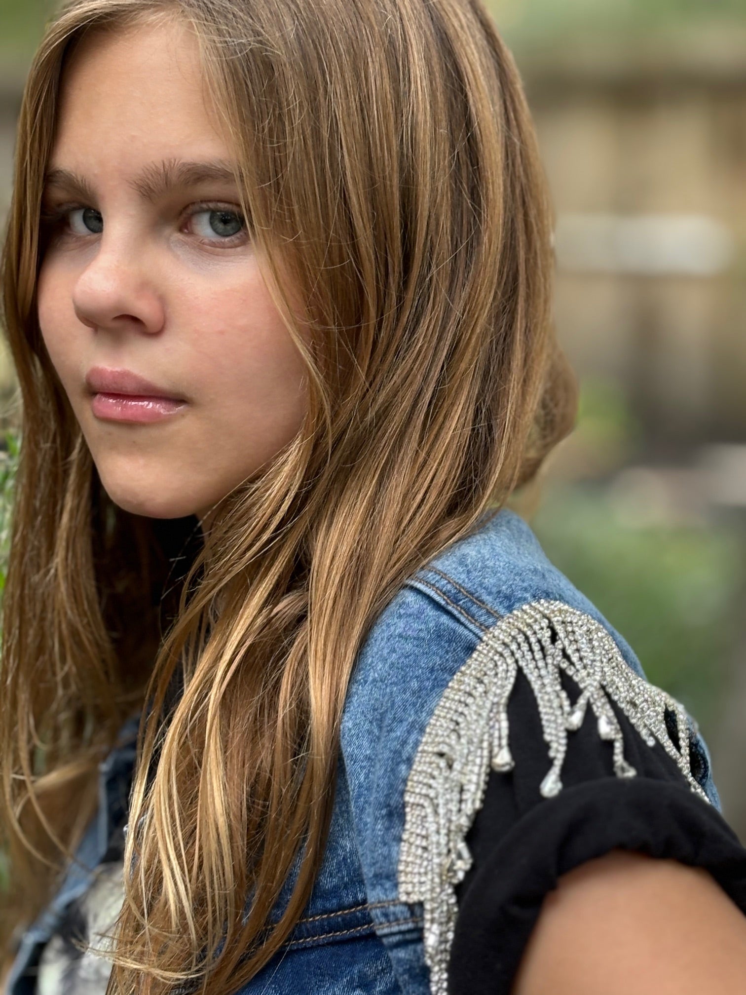 Go to the shopThe Grove's: original design. Denim jacket re-worked into a unique wear it anyway vest. Wear it as a vest or wear it as a top.