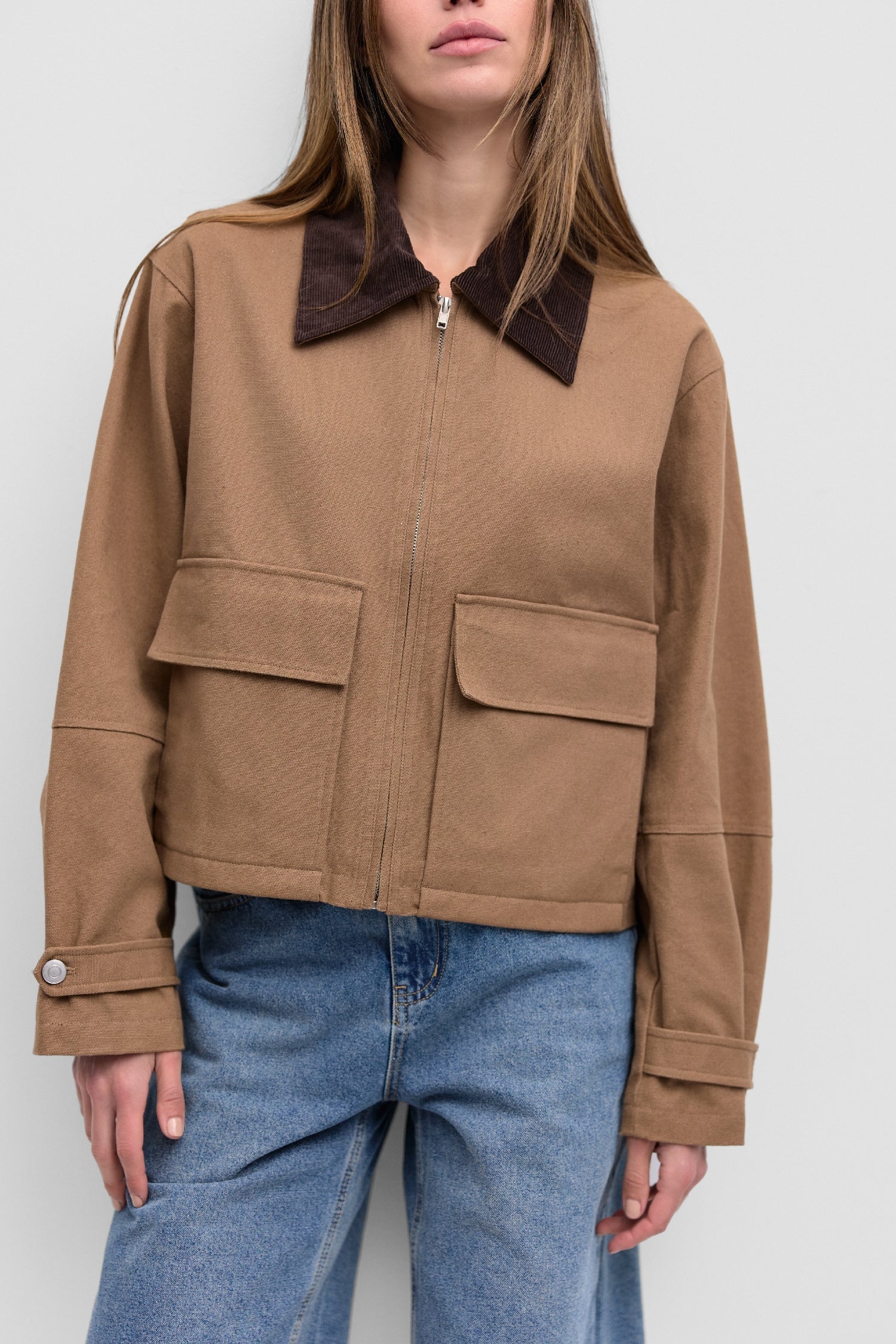 Go to the shopThe Wolf Jacket is a work-style zip-up jacket with a contrast corduroy collar, front flap pockets, and an adjustable button-back hem and sleeve cuffs for added utility. By Mod Ref